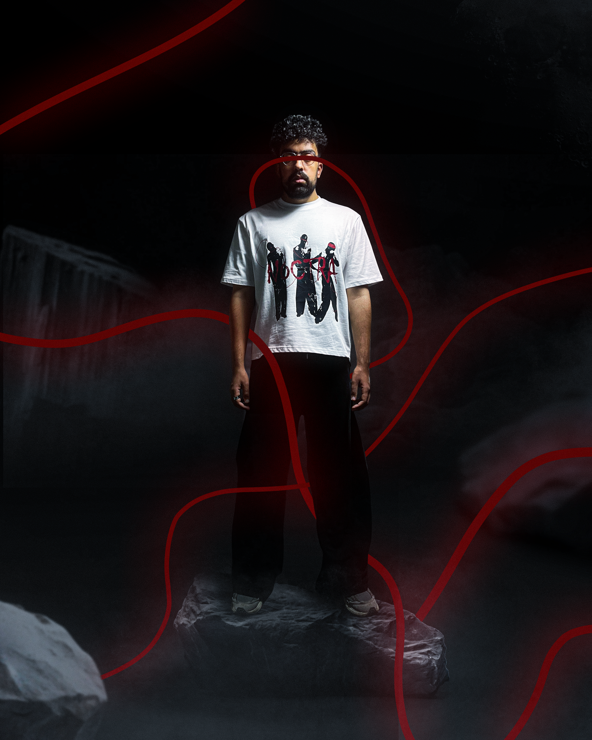 Inspired by the quiet chaos of the night, this design captures ghosted figures and looping silhouettes — like a memory caught in replay.